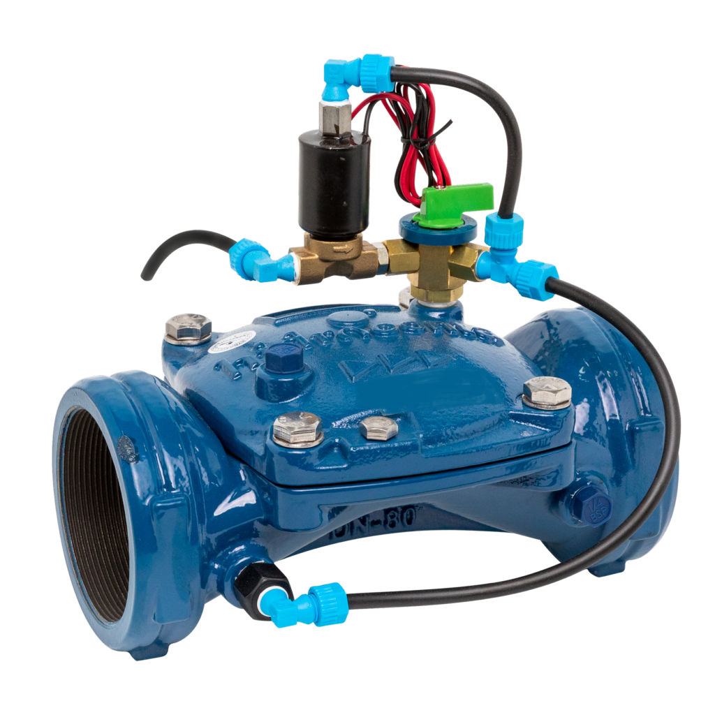 - Ręczne sterowanie: posiada w standardzie zabudowy zawór ręcznego sterowania – możliwość otwarcia, zamknięcia zaworu za pomocą pokrętła bez użycia napięcia elektrycznego