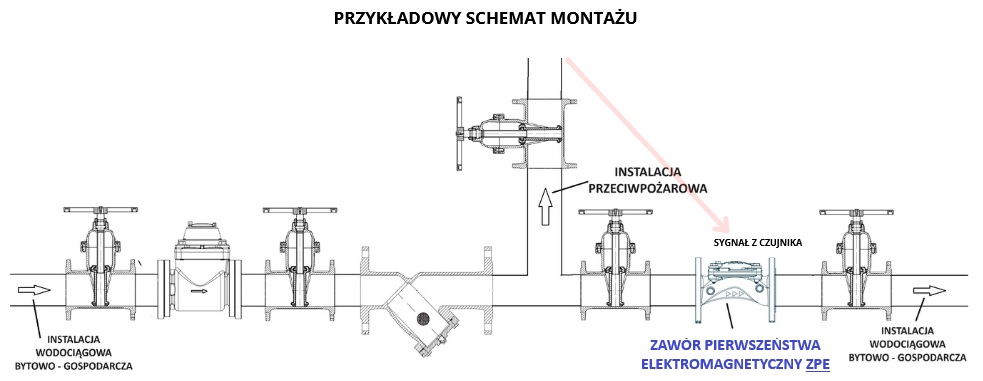 Model ZPE to zawór główny przeponowy sterowany zabudową cewkę Jest to idealne rozwiązanie do ochrony przeciwpożarowej, ponieważ:
